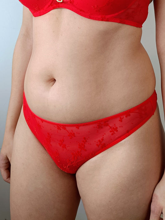Tanga em tule flocado e de efeito transparente #977